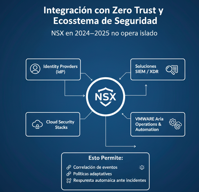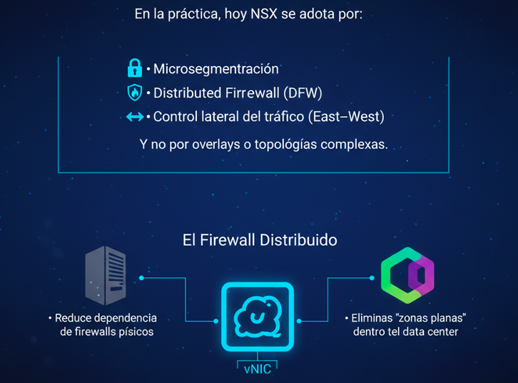 Hoy, NSX es esencialmente una plataforma de seguridad cuyo valor principal no es mover paquetes, sino controlar, segmentar y proteger cargas de trabajo en un mundo híbrido y altamente distribuido.